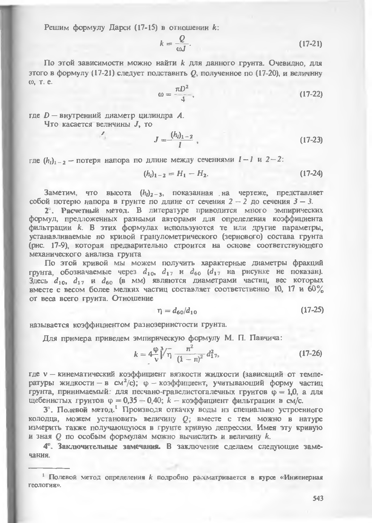 52.Способы определ коэф Дарси в случ движ грунт вод. Лабораторный, по эмперич ф-лам, полевой.
