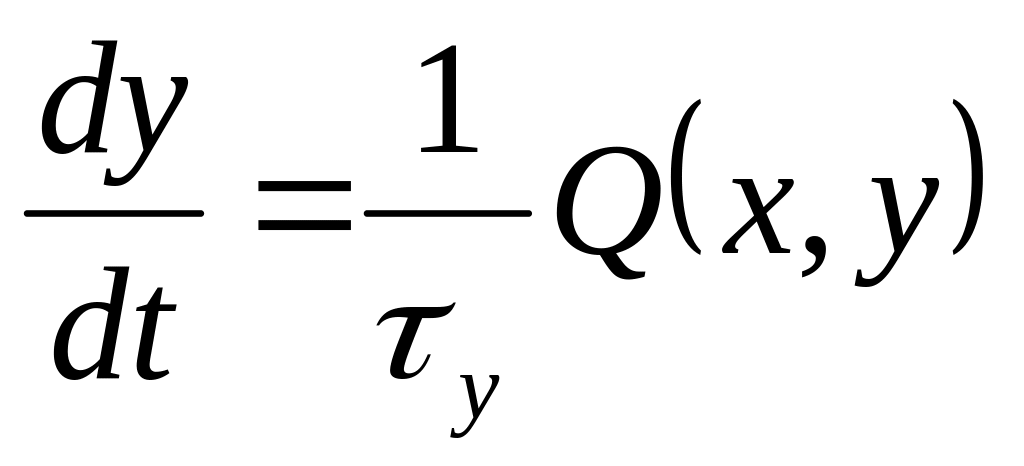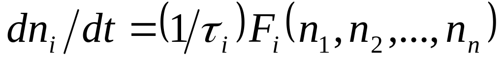 где иi - динамические переменные, например концентрации реагирующих веществ; Fi(ni) - нелинейные функции, описывающие их взаимодействие; τi- характерное время изменения переменных ni , i = 1, 2,..., m.