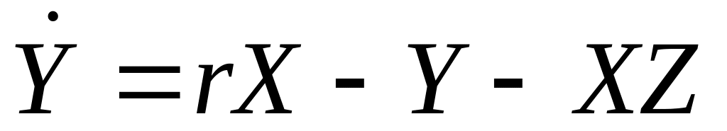 В данной системе управляющим параметром является число r. При достижении этим числом определенного значения в системе начинается хаотическое поведение. Аттрактор имеет вид восьмерки конечной толщины. То есть это притягивающее множество, из которого система не может выйти, однако внутри множества ее поведение хаотично.