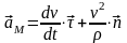 полное ускорение точки в криволинейном