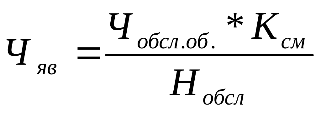 где Чобсл об – число обслуживаемых объектов (машин, станков), шт.; Ксм – коэффициент сменности; Нобсл – норма обслуживания, шт. / чел.