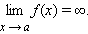 Если для каждого ε > 0 существует такая δ-окрестность точки a, что для всех x, удовлетворяющих условию |x – a| < δ, x ≠ a, выполняется неравенство |f (x)| > ε, то говорят, что функция f (x) имеет в точке a бесконечный предел: