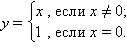 График 1.3.6.3. Предел функции y = {x (x ≠ 0); 1 (x = 0)} при x → 0 равен 0.  |
