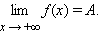 Если для каждого ε > 0 существует такое δ > 0, что для любого x > δ выполняется неравенство |f (x) – A| < ε, то говорят, что предел функции f (x) при x, стремящемся к плюс бесконечности, равен A: