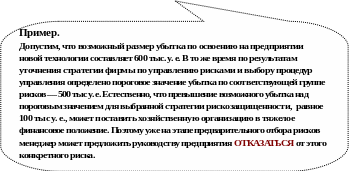 - •Примечание. Принимая окончательное решение, менеджер должен оценить возможность принятия этих рисков в случае, если по ним планируется провести некоторые превентивные мероприятия.