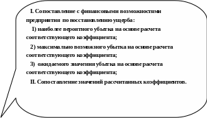 - •Значение максимально возможного, наиболее вероятного и ожидаемого убытков по основным аспектам и направлениям фирмы.
