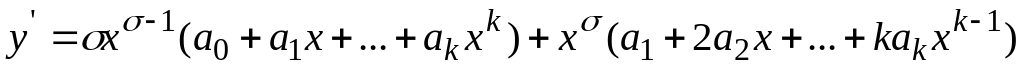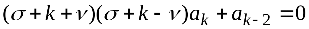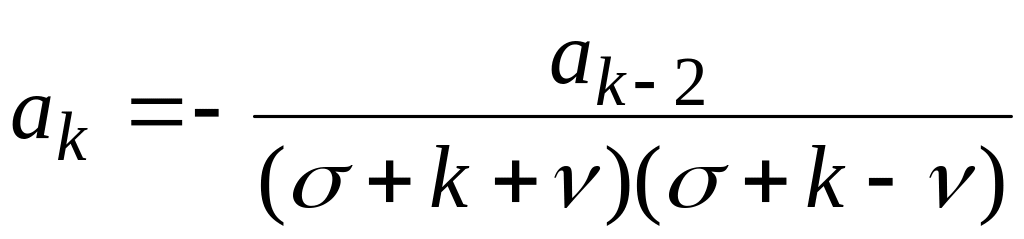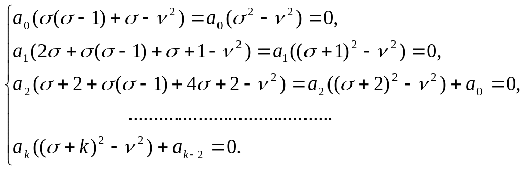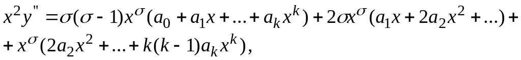 начинающегося с хσ, где σ – характеристический показатель, подлежащий определению. Подставляя ряд (3) в уравнение (2) и приравнивая нулю коэффициенты при хσ, хσ+1, ..., хσ+k, получаем уравнение для определения σ и систему уравнений для определения коэффициентов аk: