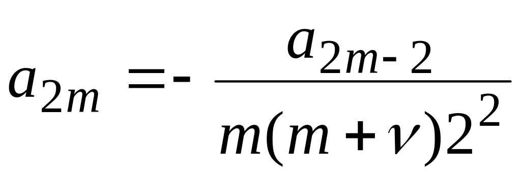 (ν – произвольное действительное или комплексное число, действительная часть которого не отрицательна). Решение уравнения Бесселя имеет особую точку при x=0. Поэтому решение у(х) следует искать в виде степенного ряда