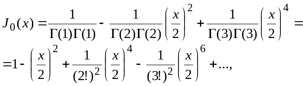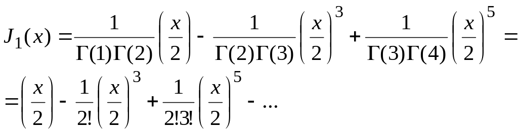 Выпишем в качестве примера ряды для функций Бесселя 1-го рода нулевого (n = 0) и 1-го (n = 1) порядков: