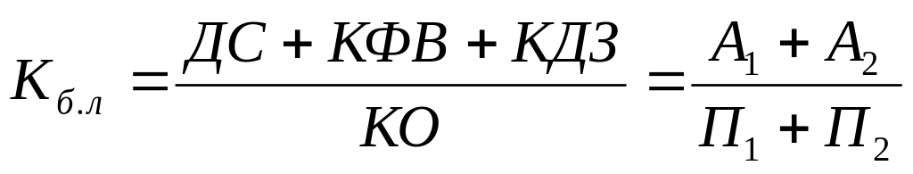 ТЛ = (А1 + А2) – (П1 + П2), если «+» - то предприятие ликвидно