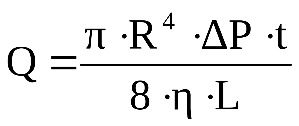 Это и есть формула Пуазейля (1799 – 1869), которая описывает объемный расход жидкости через круглую трубу, при ламинарном течении.