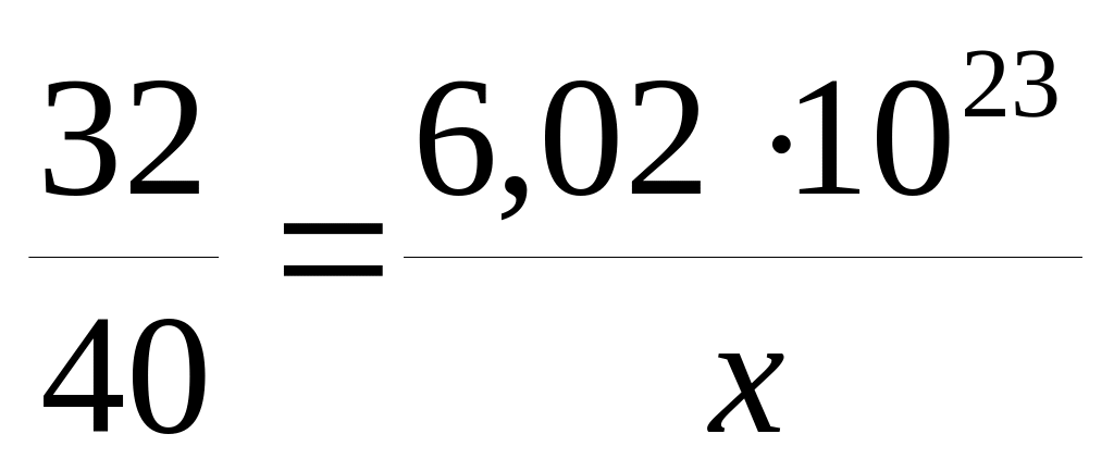 Решая данную пропорцию, находим, что 40 г кислорода содержат 7,525∙1023 частиц.