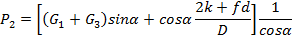 Опір P2 на ділянці підйому штоку з врахуванням кута підйому копіра, Н.