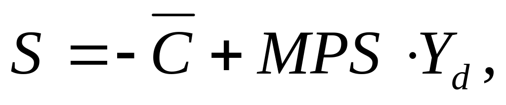 Графически предельная склонность к сбережениям представляет собой угол наклона кривой функции сбережений. Чем она больше, тем больше этот угол наклона (кривая более крутая). В связи с этим формализованный вид функции сбережений может быть представлен следующим образом: