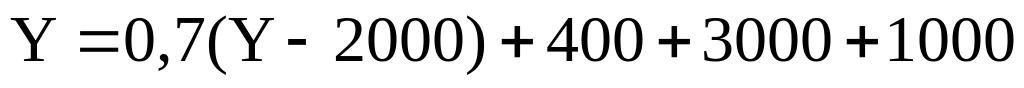 Y = 0,64Y + 200 + 300; Y = 1390 ден. ед.