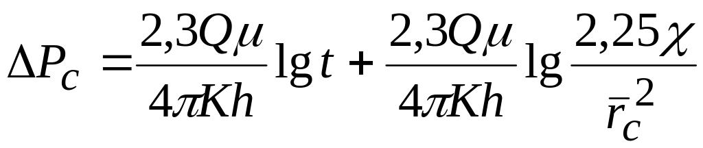 С помощью основной формулы теории упругого режима можно получить следующую функциональную зависимость между изменением забойного давления Рс и временм t: