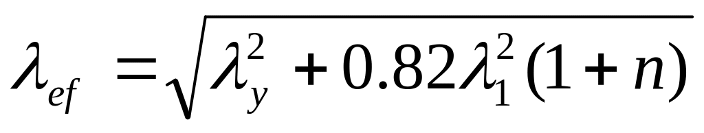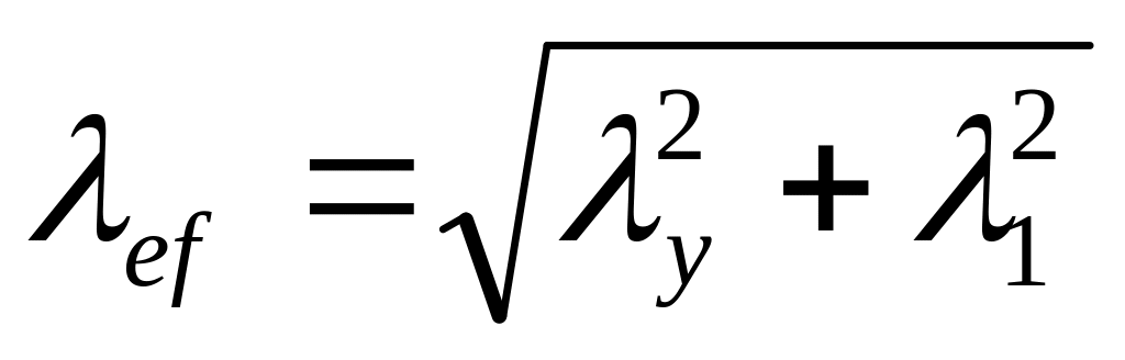 Расчет относительно свободной оси (у – у) выполняется также по формуле согласно СНиП: с заменой гибкости на приведенную гибкость ef при нахождении коэффициента продольного изгиба .