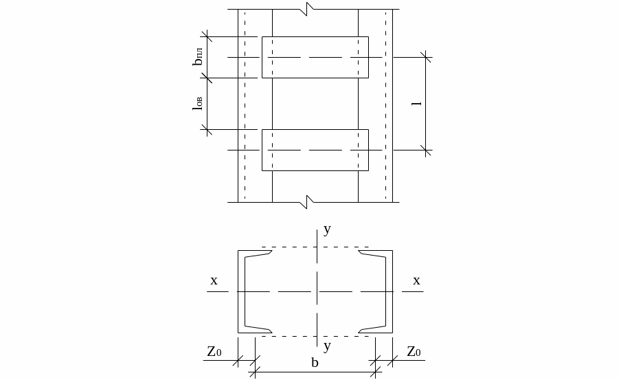 В сварных колоннах за расчетную длину принимается расстояние между планками в свету (lов).