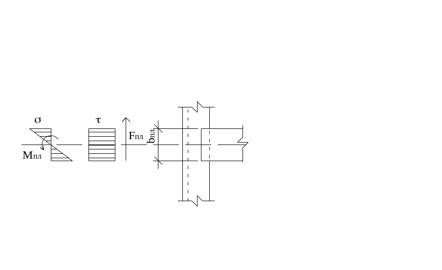 Проверка прочности швов проводится по совместному действию сдвигающей силы Fпл и изгибающего момента Мпл.