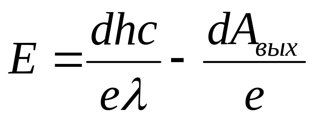 Плоская вольфрамовая пластинка освещается светом длиной волны 0,2 мкм. Найти напряженность однородного задерживающего поля вне пластинки, если фотоэлектрон может удалиться от нее на расстояние 4 см. Работа выхода электронов из вольфрама 4,5 эВ.