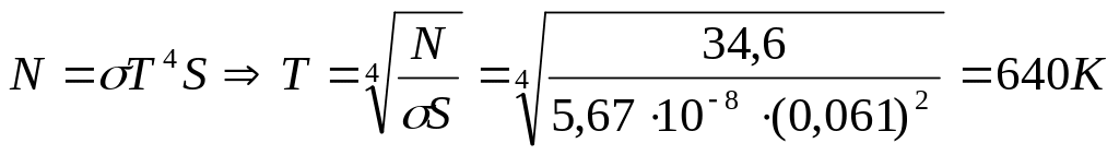 Поток энергии, излучаемой из смотрового окошка плавильной печи, равен 34,6 Вт. Опр-ть температуру печи, если площадь отверстия 6,1 см2.