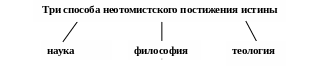Основополагающий принцип неотомизма раскрывается в требовании гармонии веры и разума. Вера и разум в неотомизме – не антиподы, а два способа достижения одной и той же цели – познания Бога. Высшим актом веры – является божественное откровение, которое оказывается также и высшим способом познания мира. Неотомисты выделяют три формы постижения истины: науку, философию, теологию (табл. 23).