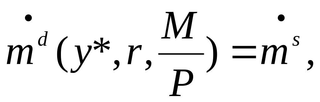 Равновесное состояние на денежном рынке устанавливается в ситуации, когда спрос на реальные деньги равен реальному предложению денег.