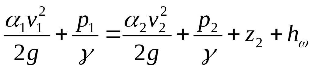 Уравнение Бернулли для реальной жидкости будет иметь вид: