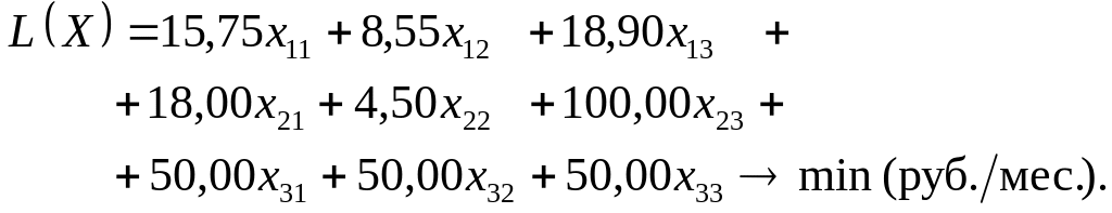 Формальная ЦФ, то есть суммарные затраты на все возможные перевозки муки, учитываемые в модели, задается следующим выражением: