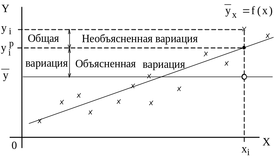 Рис.3.3. Графическая интерпретация коэффициента детерминации