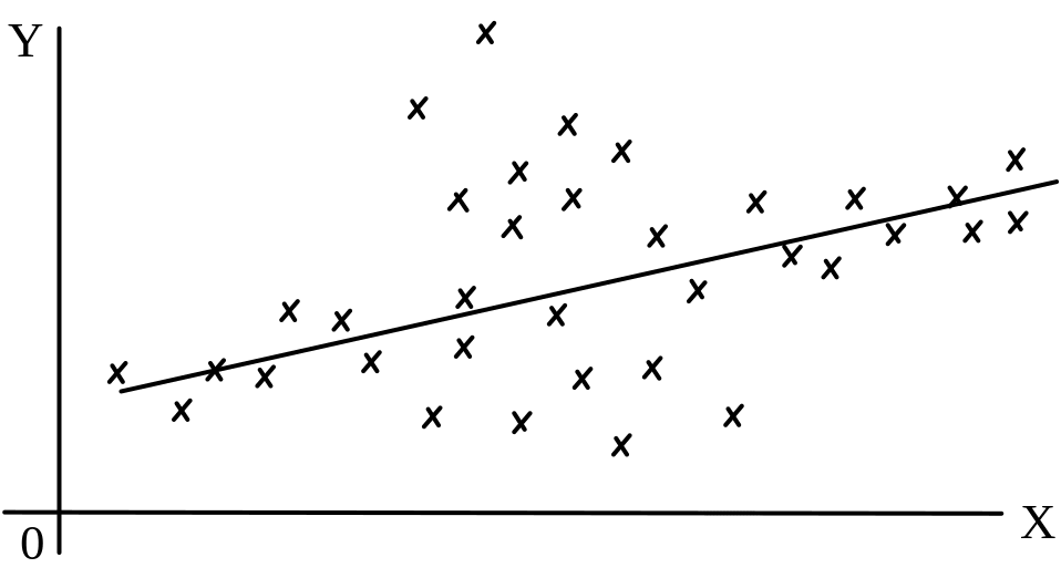 Регрессионный и корреляционный анализ позволяет установить и оценить зависимость изучаемой случайной величины Y от одной или нескольких других величин X, и делать прогнозы значений Y. Параметр Y, значение которого нужно предсказывать, является зависимой переменной. Параметр X, значения которого нам известны заранее и который влияет на значения Y, называется независимой переменной. Например, X – количество внесенных удобрений, Y – снимаемый урожай; X – величина затрат компании на рекламу своего товара, Y – объем продаж этого товара и т.д.