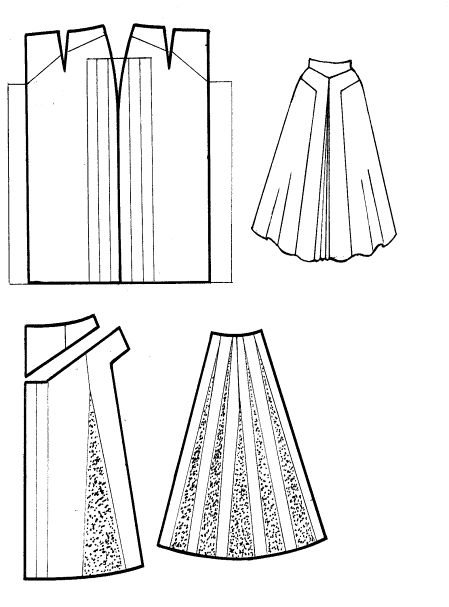 Коническое расширение может быть равномерным по всему периметру изделия или неравномерным (как правило, больше с боковых сторон, чем спереди и сзади). При разработке конструкции по рисунку модели величину расширения деталей определяют ориентировочно по силуэту модели.