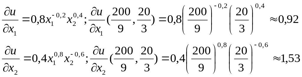 Определим предельную полезность каждого товара в оптимальной точке. Имеем: