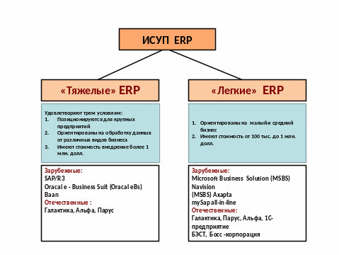 Рис. 12.1. Классификация ИСУП класса ERP, применяемых в России