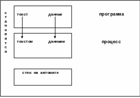 Процесс- это последовательность операций при выполнении программы. Он состоит из текста, данных и стека.