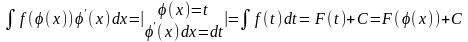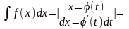 Нехай F(х) - первісна функції f(х) на проміжку (а;b), тобто , x(а;b), і нехай функція х = (t) визначена і диференційована на проміжку (;), причому множина значень цієї функції є проміжок (а;b). Тоді справедлива формула:
