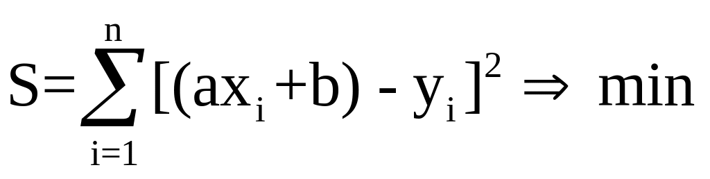 17. Отыскание параметров линейной ф-ии методом наименьших квадратов.