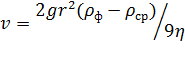 Свободное оседание частниц под действием гравитационного поля называется седиментацией. Скорость седиментации v пропорциональна ускорению силы тяжести g и зависит от вязкости среду η и размера (радиуса) частиц r:
