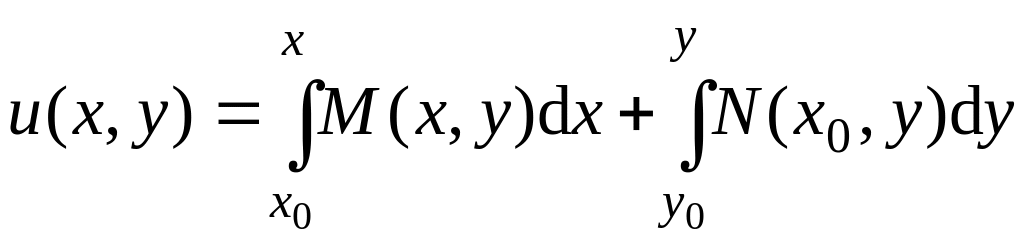 Теорема. Предположим, что функции M и N определены и непрерывны в некоторой односвязной области D и имеют в ней непрерывные частные производные соответственно по y и по x. Тогда, для того чтобы уравнение (9.1) было уравнением в полных дифференциалах, необходимо и достаточно, чтобы выполнялось тождество