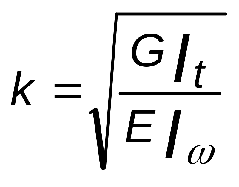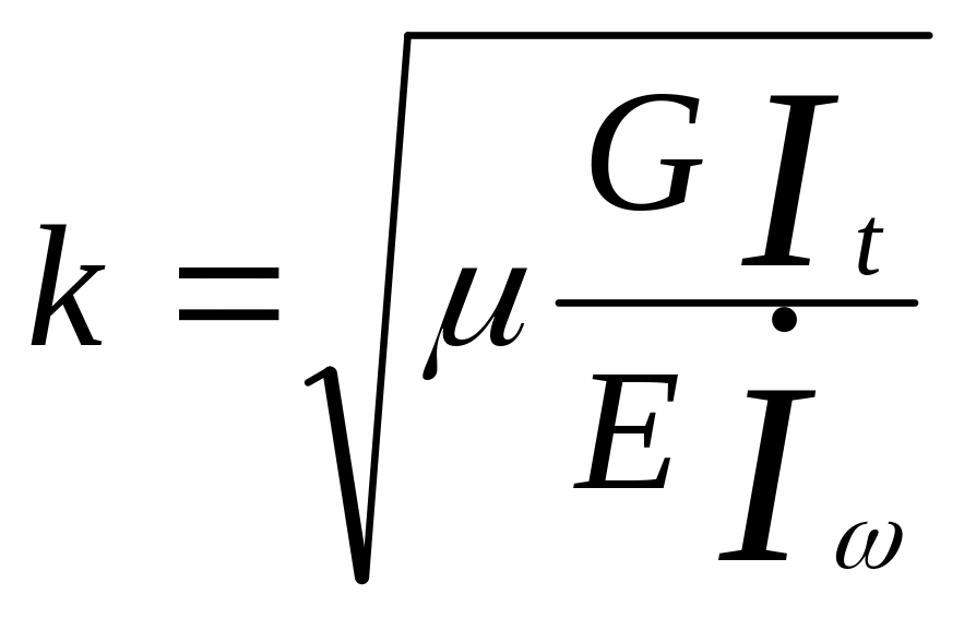 μ = 1- It / Ip –коэффициент депланации сечения;It- момент инерции сечения при кручении; Ip - полярный момент инерции; Iω- главный секториальный момент инерции сечения.