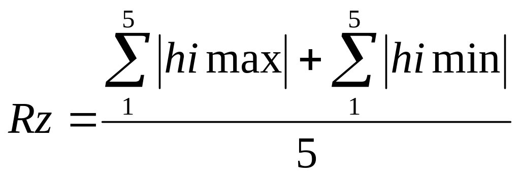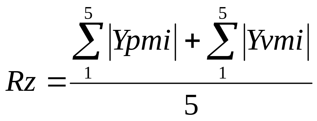 Высота неровностей профиля по десяти точкам - Rz это сумма средних абсолютных значений высот пяти наибольших выступов профиля и глубин пяти наибольших впадин профиля в пределах базовой длины (рис. 1.17).