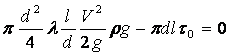 Для определения физического смысла коэффициента »рассмотрим объём жидкости длиной l, который равномерно движется в трубе диаметром d со скоростью V. На этот объём действуют силы давления P1 и P2, причём P1> P2, и силы трения рассматриваемого объёма о стенки трубы, которые определяются напряжением трения на стенке трубы Д0. Условием равномерного движения под действием сказанных сил будет следующее равенство: