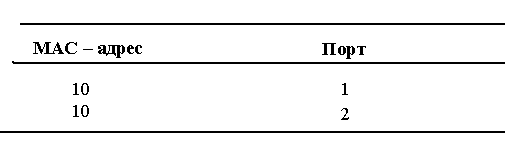 Теперь адресная таблица моста 2 будет иметь уже другую запись о станции с адресом 10: