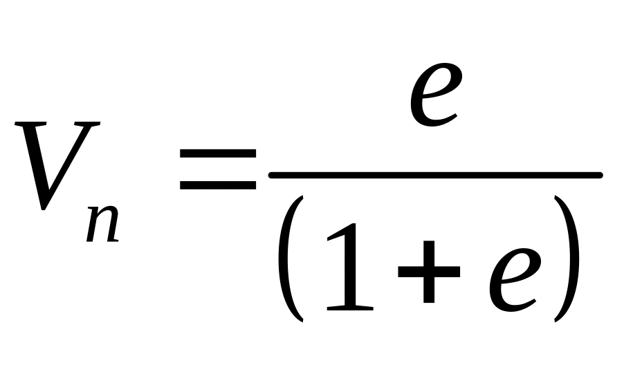 а также коэффициента пористости е, который выражается как отношение объёма пор к объёму, занимаемому минеральными частицами: