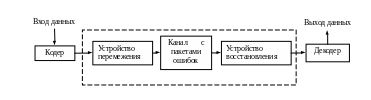 Одно из возможных решений в таких случаях может состоять в использовании достаточно простого кода, рассчитанного на исправление одиночных ошибок, вместе с парой устройств, выполняющих перемежение закодированных символов перед их передачей в канал и восстановление (деперемежение) после приема. При такой обработке кодовой и принятой последовательностей ошибки на входе декодера распределяются более равномерно.