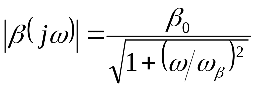 Совместное решение уравнений (7.6), (7.7) и (7.14), проведенное по той же методике, что и в предыдущем случае, приводит к эквивалентной схеме, приведенной на рис. 7.12,б. По аналогии с предыдущим случаем для коэффициента усиления по току в схеме с общим эмиттером и для модуля данной величины получим:
