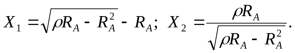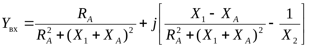 Для выполнения условия оптимального согласования антенны с фидером Rвх.с= (Гс=0) необходимо в (8.6) получить действительную часть проводимости Re(Yвх)=1/, а мнимую Im(Yвх)=0. Составив и решив два данных уравнения, получим выражения для реактивных элементов согласующего устройства при RА>(RА)2: