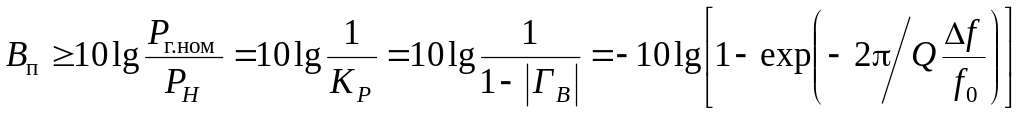 Приняв внутри полосы согласования f значение коэффициента отражения Г=Гв и вне ее Г=1, из (8.10) получим: