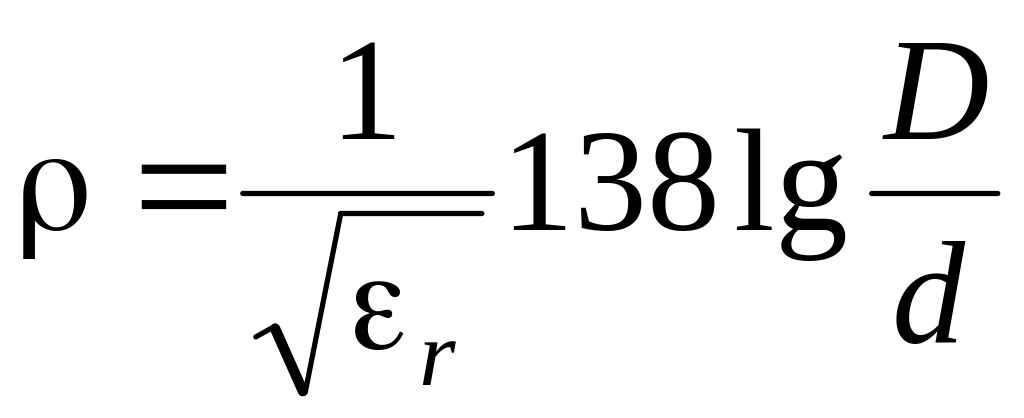 Волновые сопротивления двух типов фидерных линий: коаксиальной (рис. 12.8,а), при ее заполнении материалом с диэлектрической проницаемостью r и неэкранированной двухпроводной (рис. 12.8,б) - определяются следующими выражениями, Ом:
