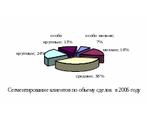 доли оборотов сегментов в общем объеме продаж распределены следующим образом: в 2005 году крупные – 20 %; средние – 28 %; мелкие – 52 %, в 2006 году крупные – 37 %; средние – 38 %; мелкие –25 %.